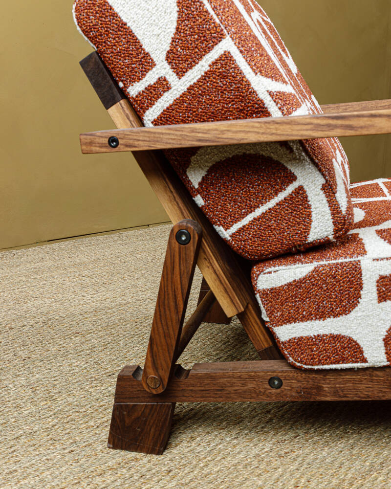 Materials: American walnut, high resilience foam dacron 100gr. Available in leather and fabric
