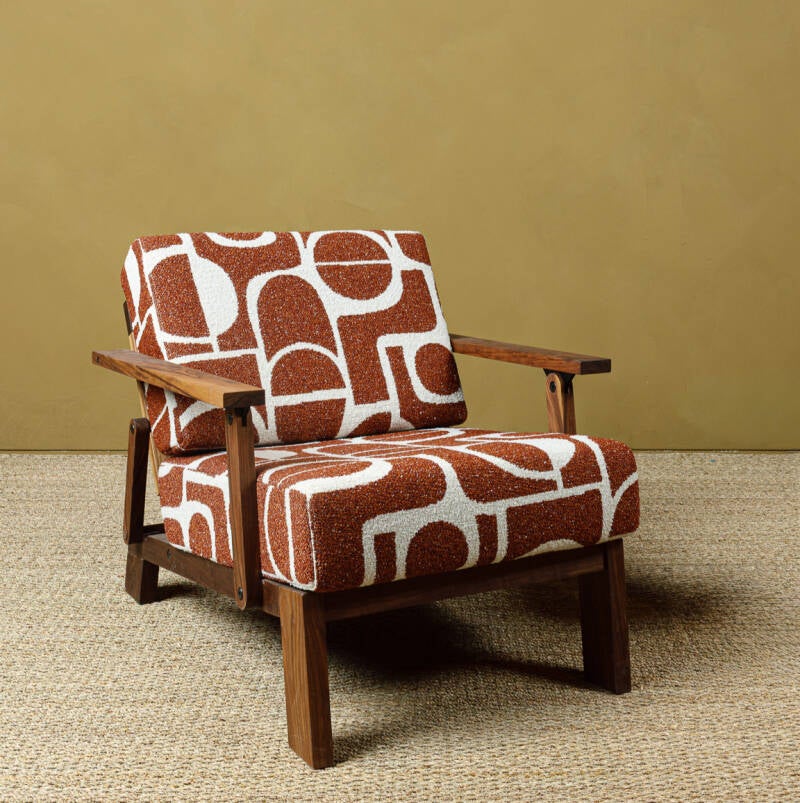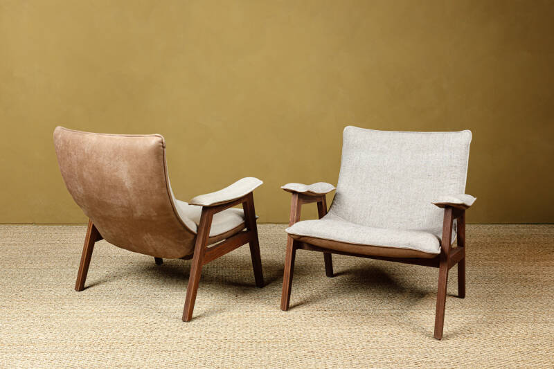Materials: American walnut, high resilience foam. Available in leather and fabric